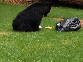 In our back yard. You can see the rear end of our RV in the background. The back yard abuts a wildlife conservation area. We average about 1visit or so per week, usually the day before we put out the trash for pickup. These guys are smart and make the rounds when the pickings are the best. I’m told by the rangers that there are about 6 families…[Read more]